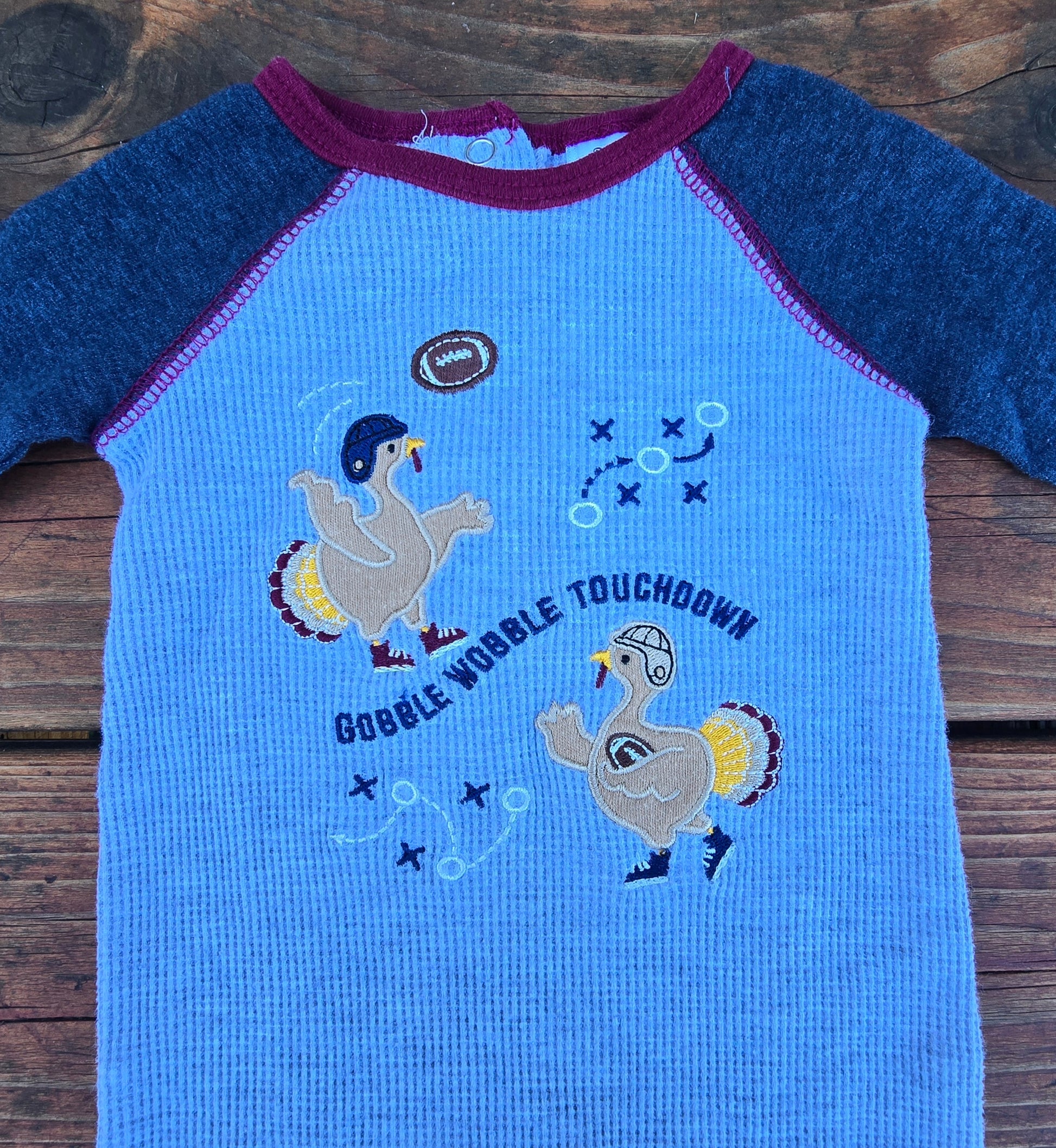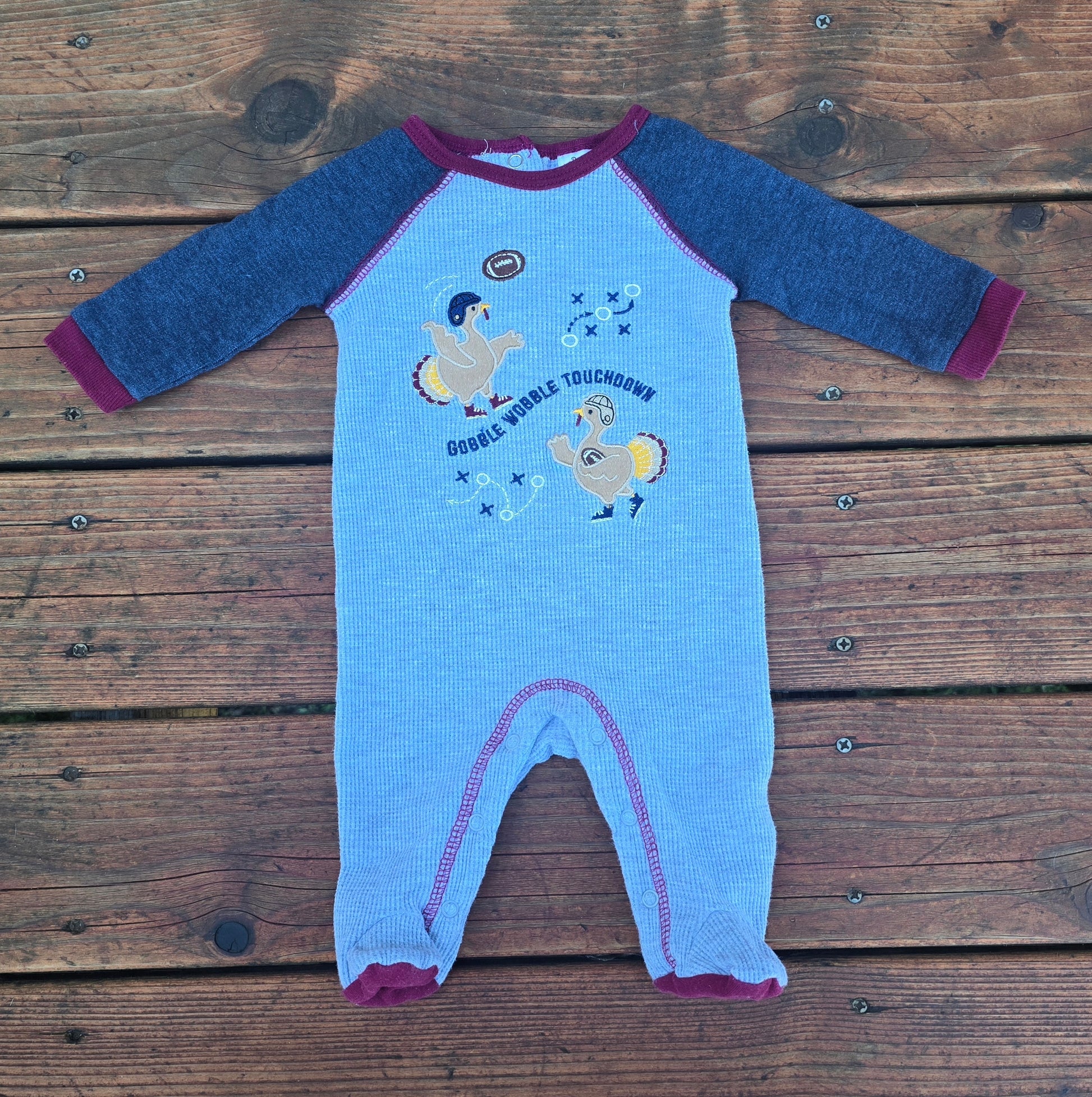 Boys sleeper with turkeys playing football