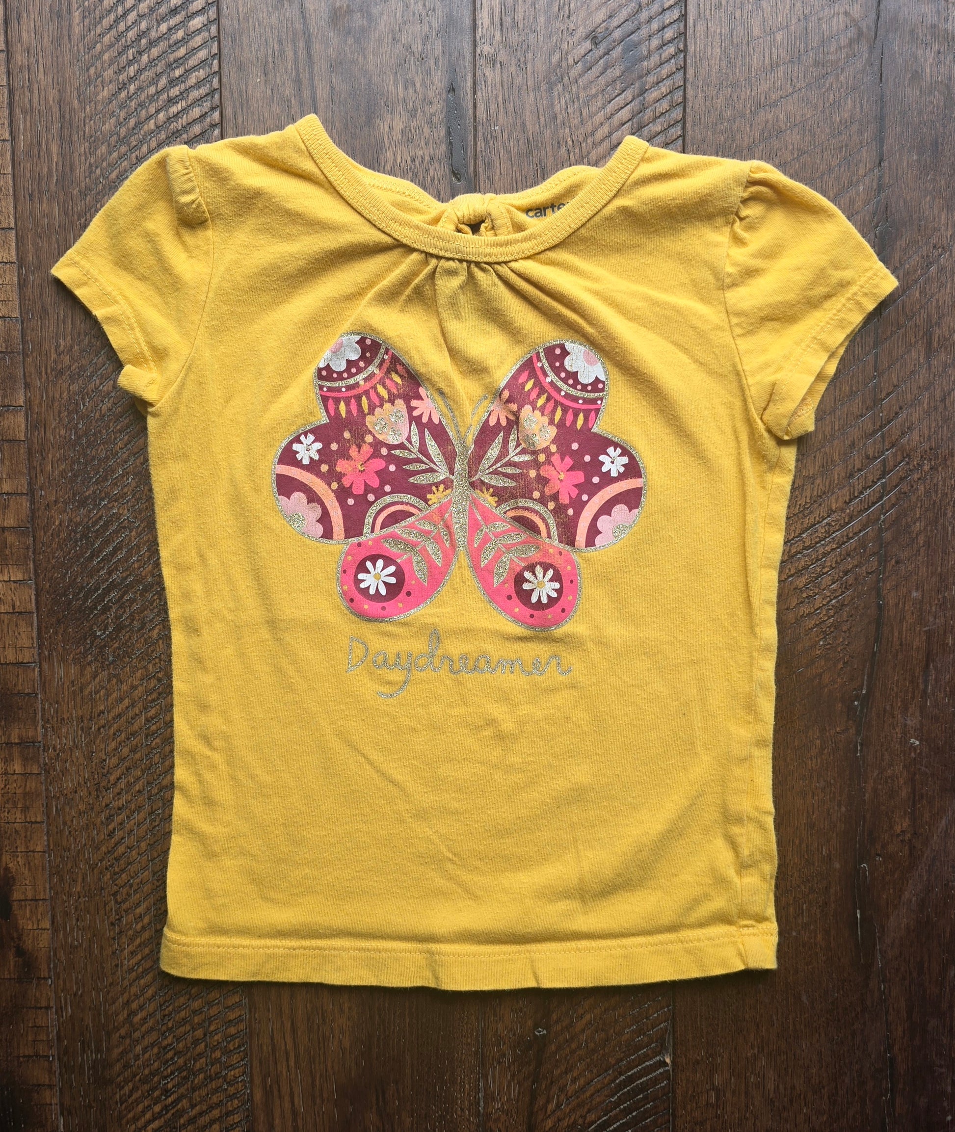 Girls mustard yellow top with butterfly graphic