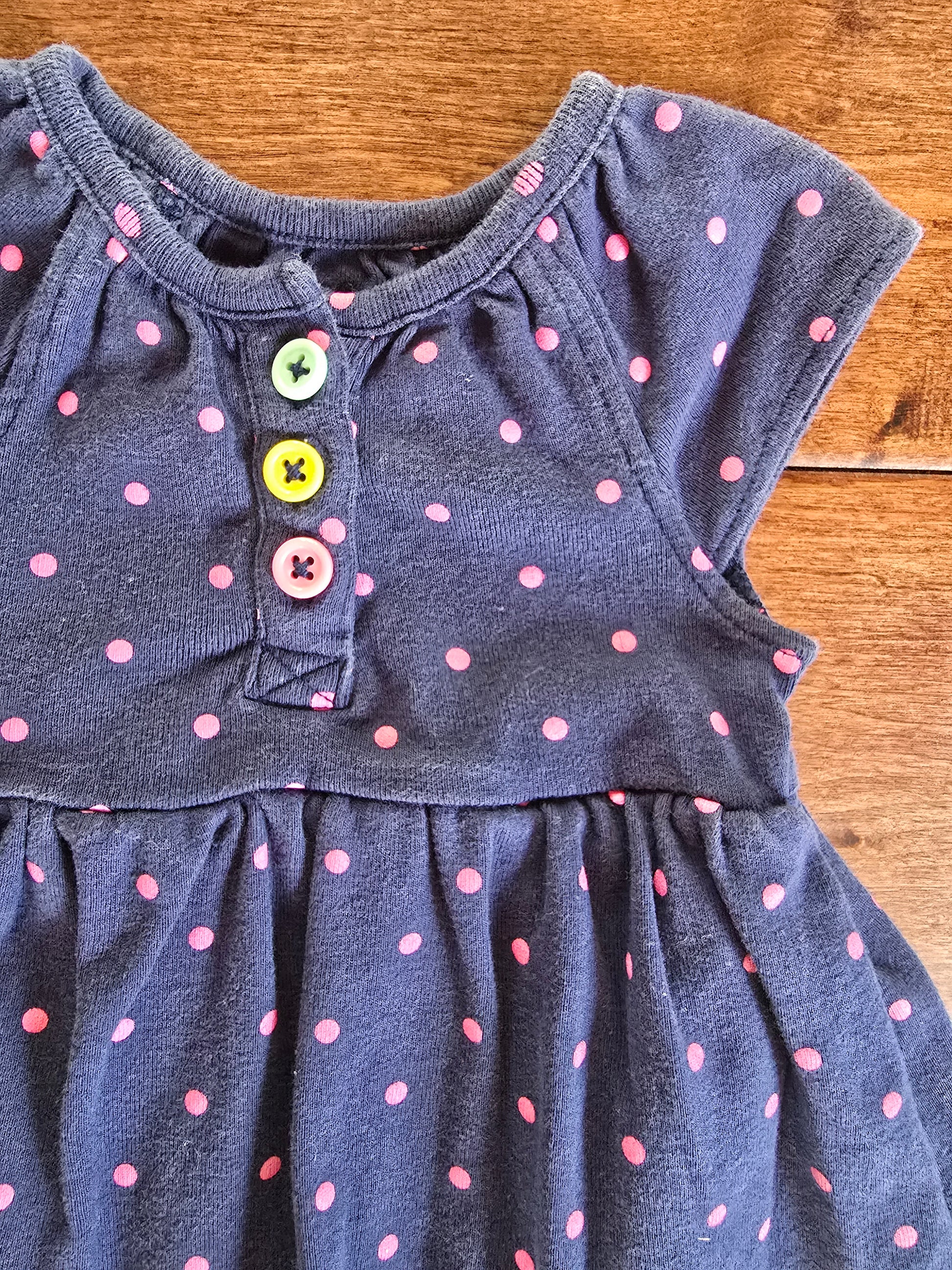 Girls navy blue short sleeve casual dress with pink polka-dots
