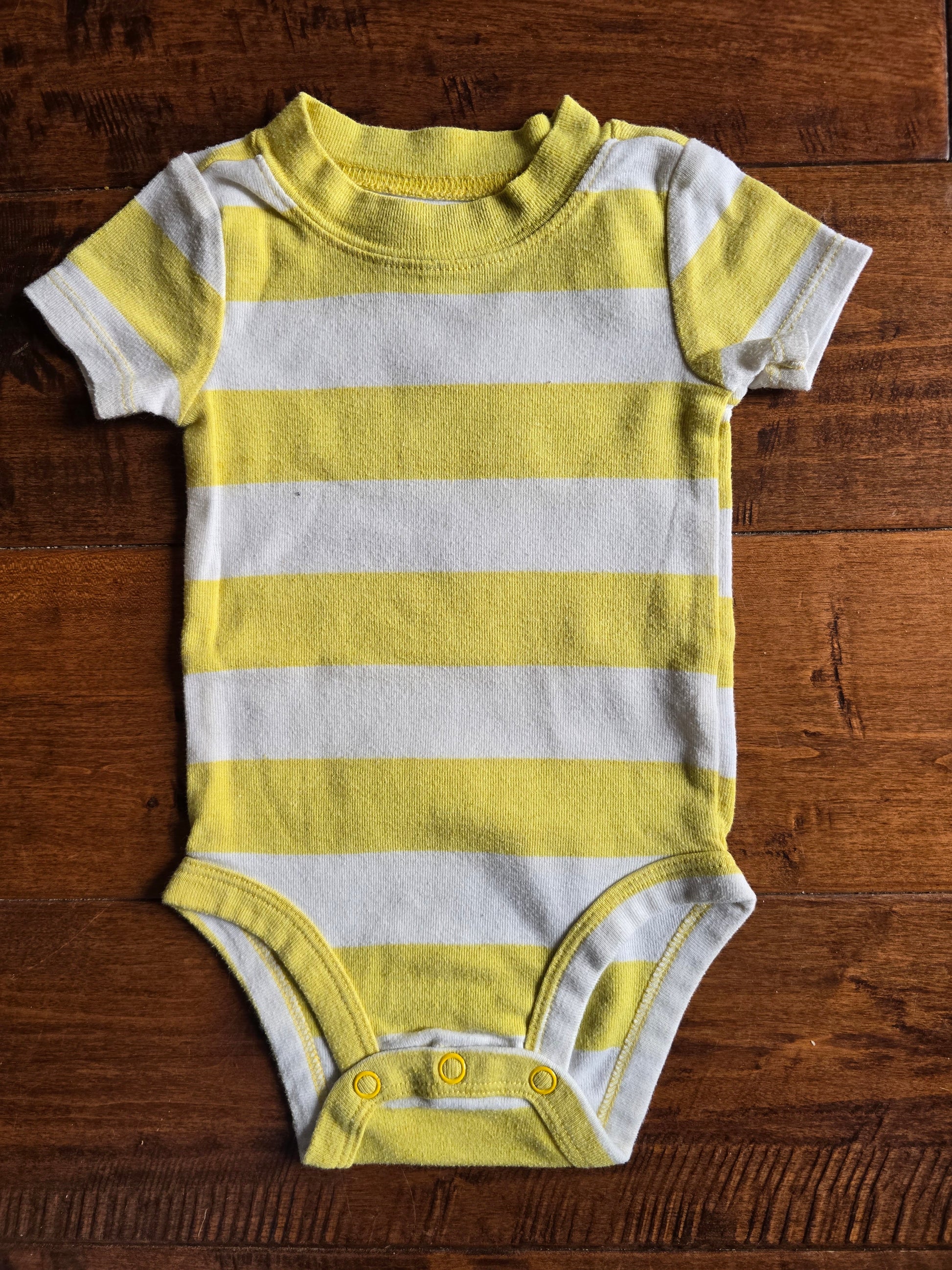 - Thick yellow and white stripe short sleeve onesie