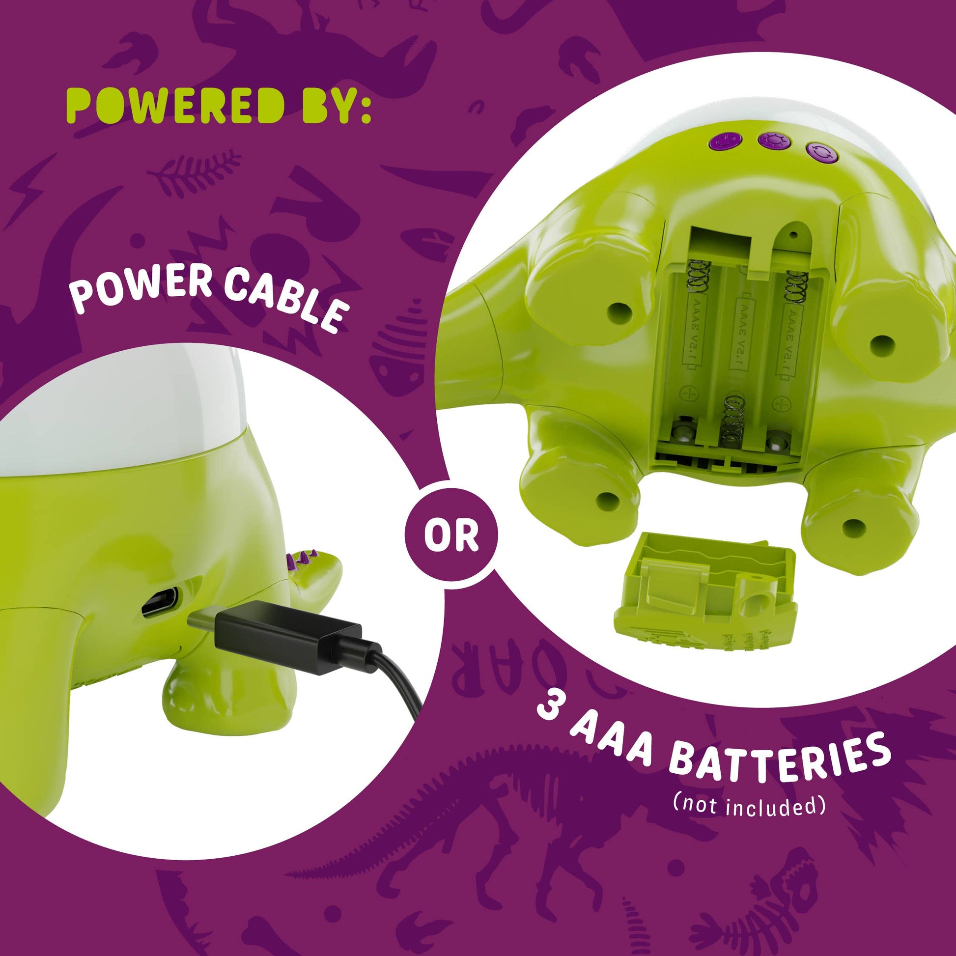 EASY TO POWER - Use the included power cable or go cordless with 3 AAA batteries (not included) for adventures beyond the bedroom. Perfect for travel or wherever your little explorer's imagination