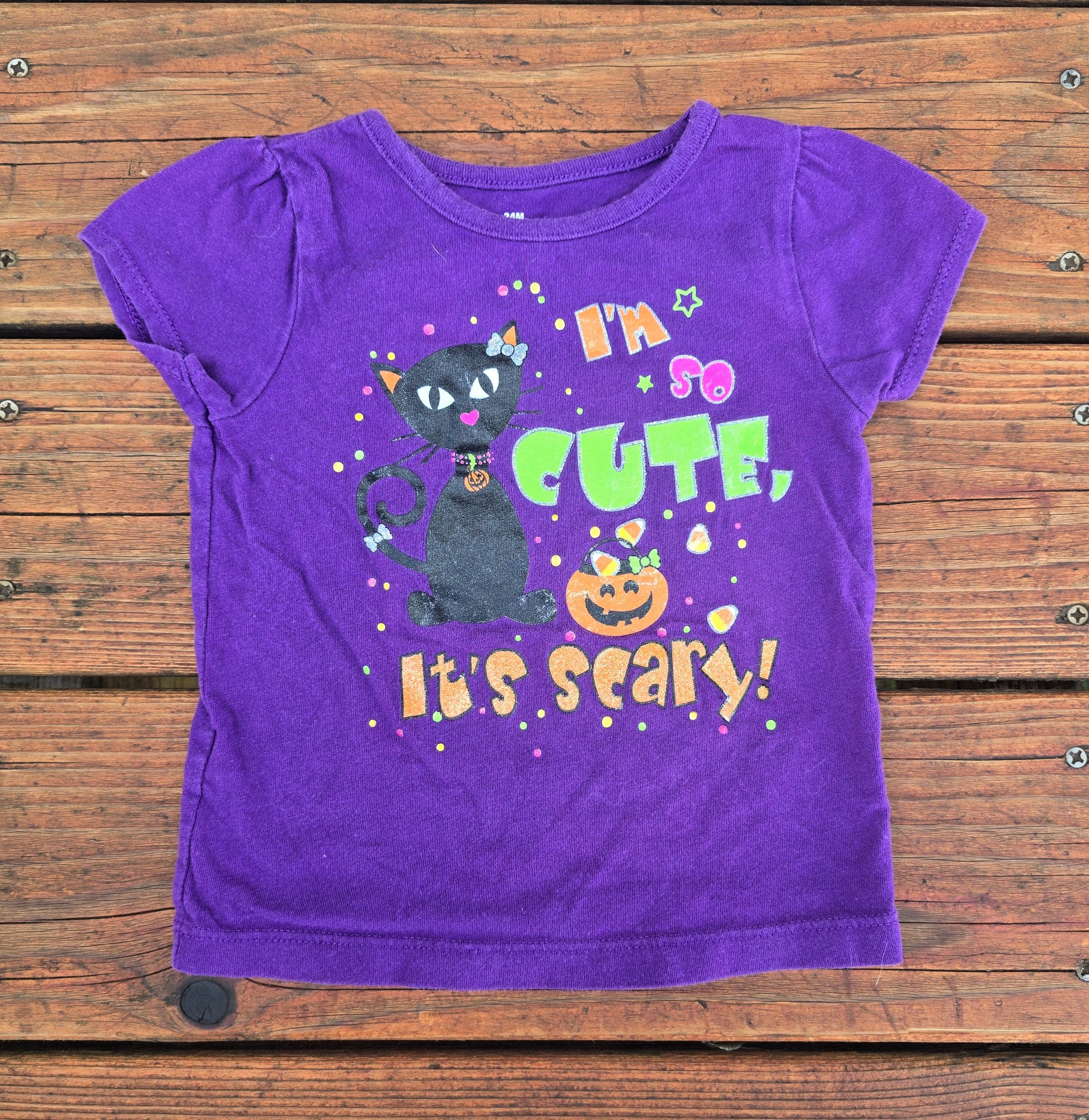 Girls short sleeve, crew neck t-shirt with black cat graphic
