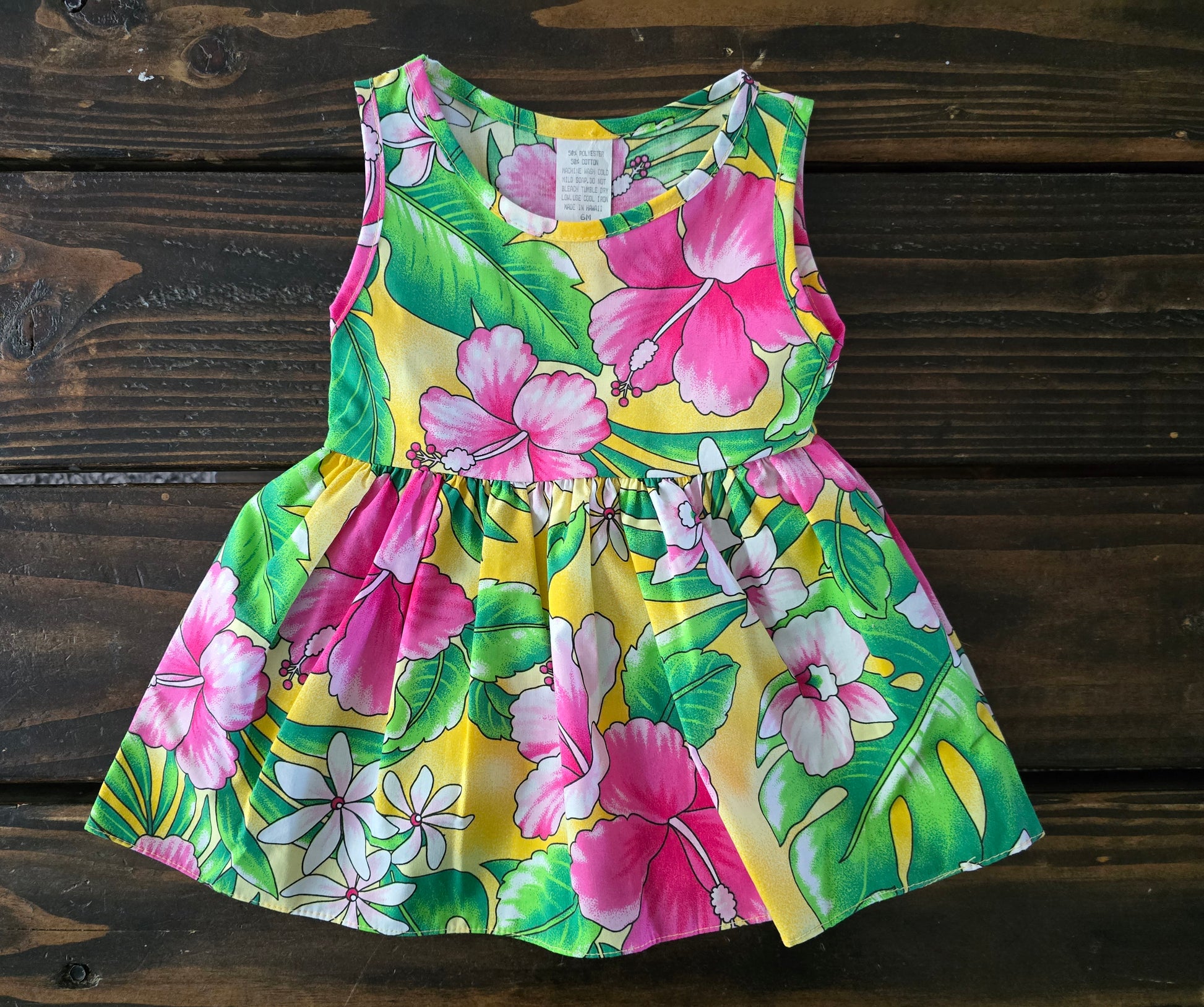 Girls sleeveless casual dress with Hawaiian floral print
