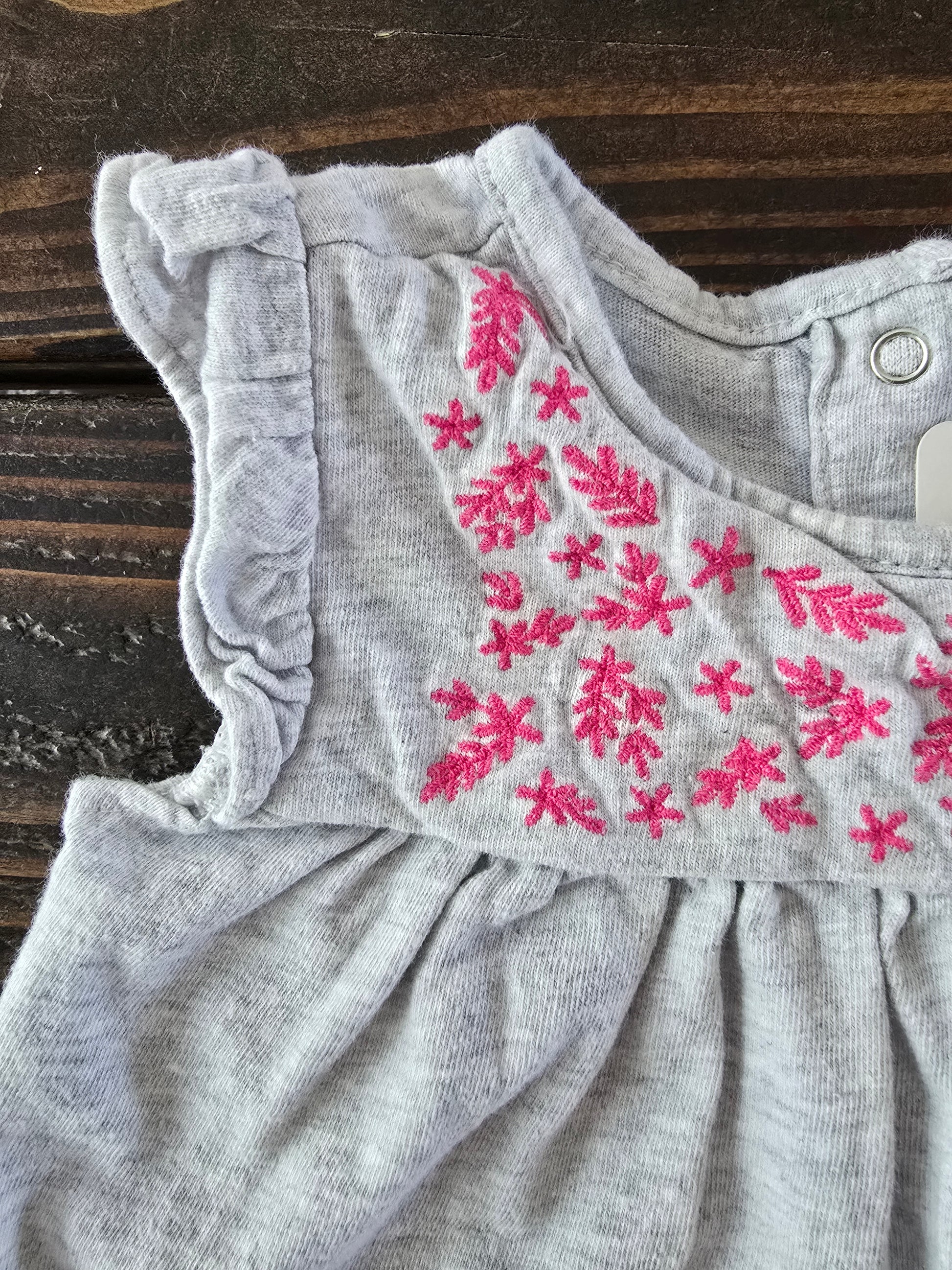 Girls light gray top with pink embroidered flowers
