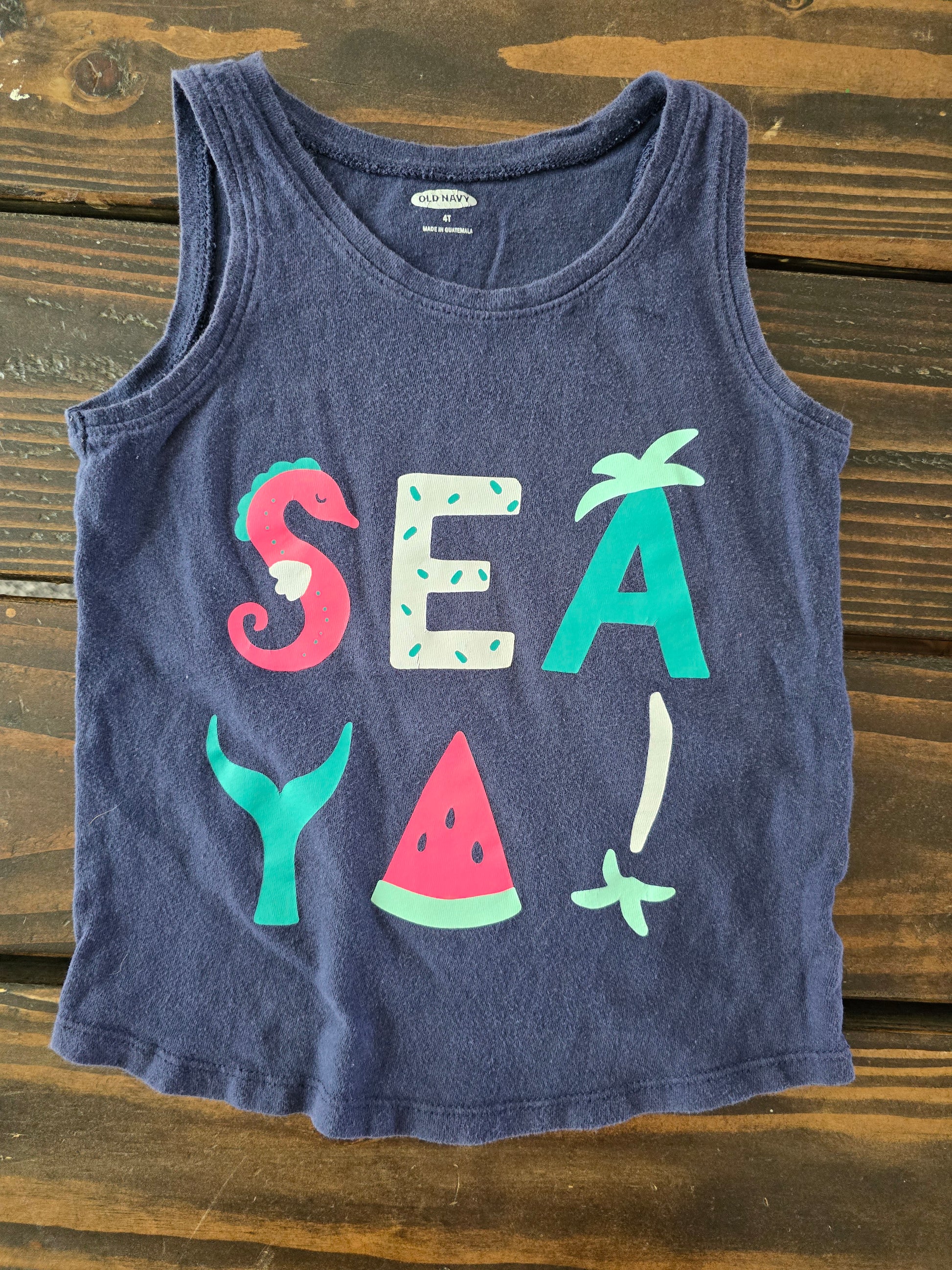 Girls navy blue tank with beach print