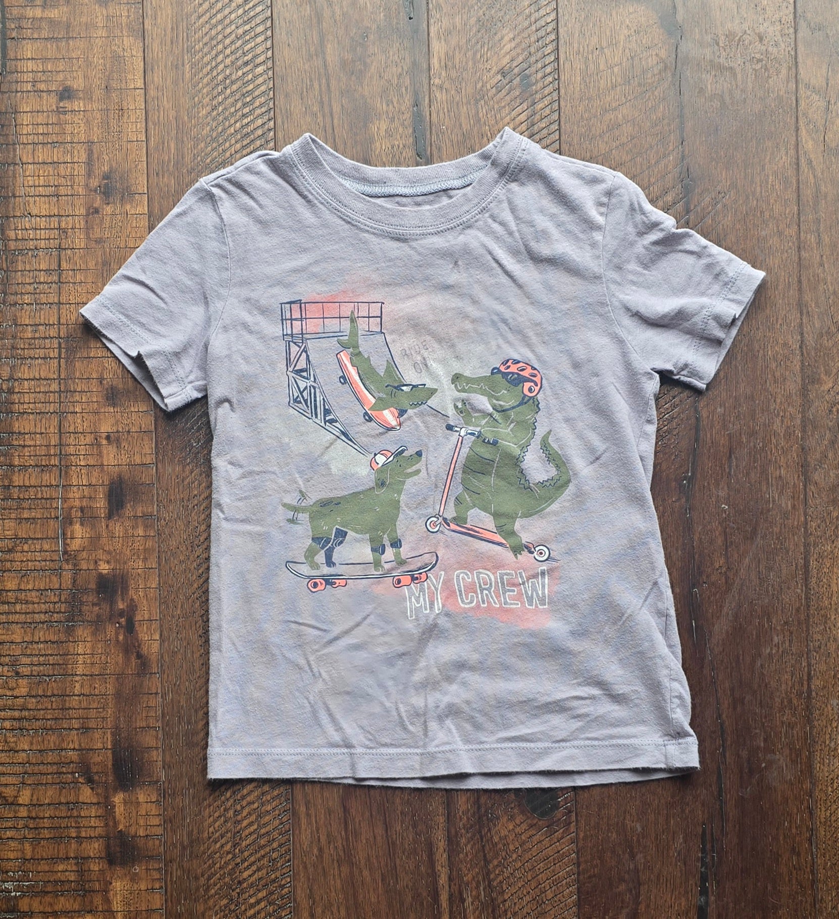 Boys gray short sleeve, crew neck t-shirt with alligator graphic