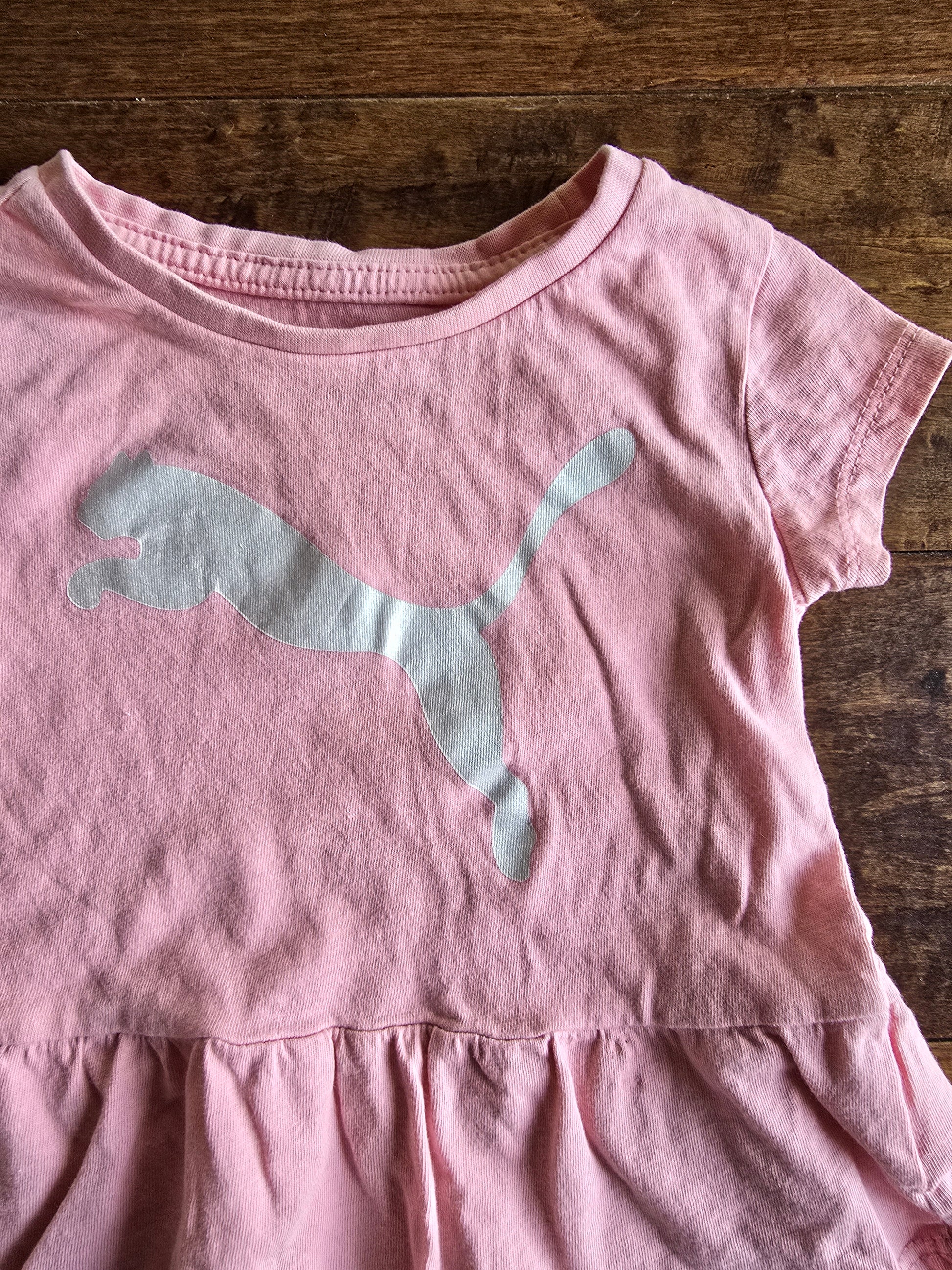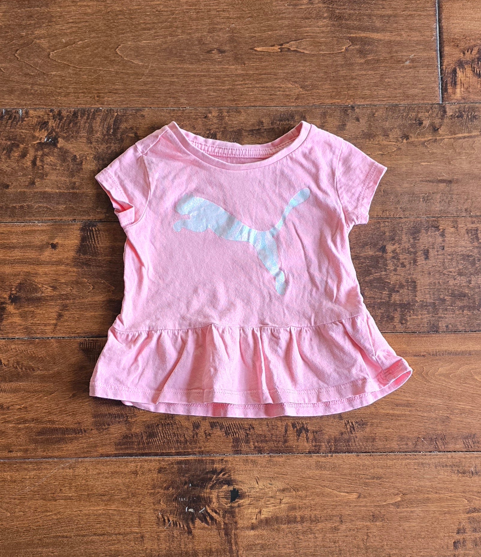 - Short sleeve pink blouse top with Puma graphic and ruffled bottom
