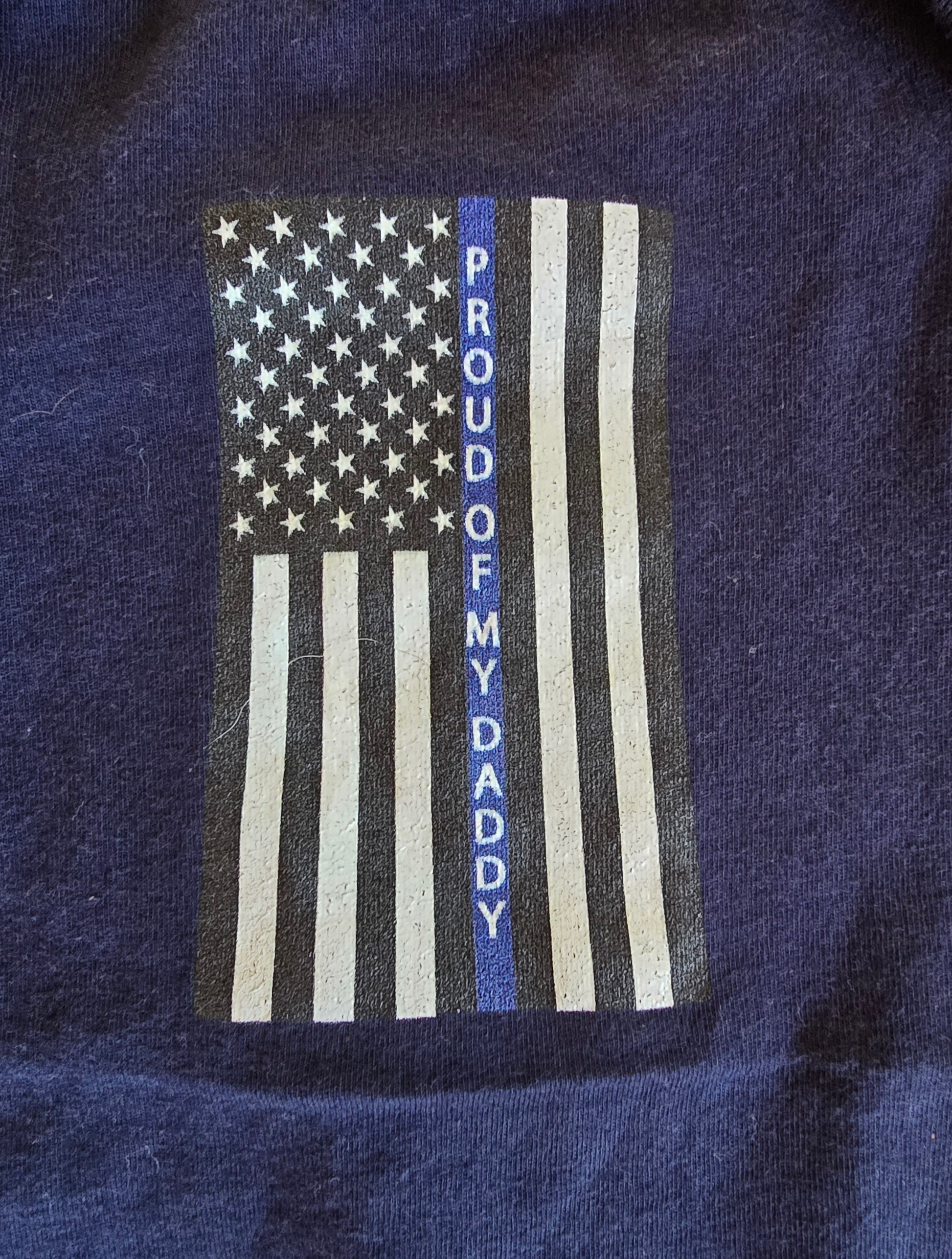 - Back the blue flag graphic and 'Proud Of My Daddy' saying
