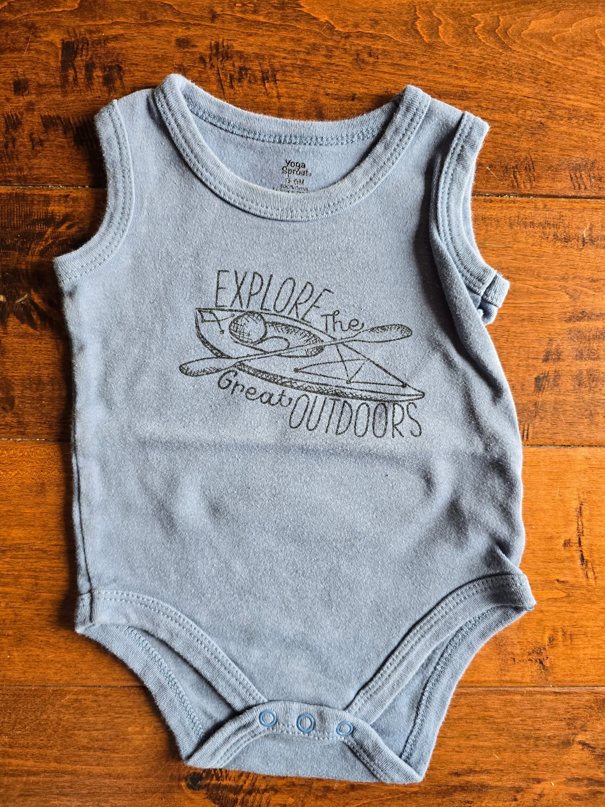 - 'Explore The Great Outdoors' saying with a kayak graphic